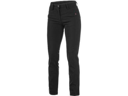 Dámské elastické kalhoty, pas s poutky na opasek, 2 přední klínové kapsy, 2 nakládané kapsy zezadu, menší boční kapsy na tužky.