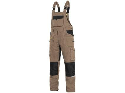 Pánské montérkové kalhoty s náprsenkou, strečová tkanina umožňující volný pohyb, náprsní kapsa s klopou, pas s poutky na opasek, přední kapsy s kapsou na zip, multifunkční kapsy na obou stranách, kolena zesílena 600D polyesterem s možností vložení kolenních výztuh, dvě zadní kapsy - jedna s klopou, zadní spodní lem nohavice vyztužen 600D polyesterem, šle s gumou vzadu, reflexní doplňky. Doporučené použití: strojírenství, stavebnictví, lehký průmysl, automobilový průmysl, logistika, skladová manipulace, spedice, autoservisy, údržba, montáže, zemědělství, zahrada, hobby.