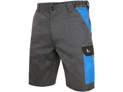 Pánské montérkové kraťasy z lehkého materiálu, pas s poutky na opasek a gumou v bocích, přední klínové kapsy, boční kapsa s klopou, kapsa na skládací/svinovací metr, zadní jednoduchá kapsa na pravé straně, reflexní doplňky. Doporučené použití: letní pracovní oděv, stavebnictví, strojírenství, lehký průmysl, automobilový průmysl, logistika, skladová manipulace, spedice, autoservisy, údržba, montáže, zemědělství, učiliště, zahrada, hobby.