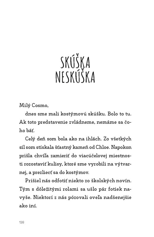 Ako Penny zvládne školské divadloPenny čaká v novom meste veľa zmien Práve, keď si Penny Lowryová myslela, že má svoj život - a svoje obavy - pod kontrolou, jej rodičia sa rozhodnú, že sa presťahujú do nového domu. Čo znamená novú cestu do školy, novú čudnú susedku a novú spálňu s divnými zvukmi... Ale potom príde niečo ešte desivejšie - školská divadelná hra!Aj ťažké chvíle sa dajú zvládnuť, ak máme po boku správnych ľudíZmeny v živote sú ťažké, ale Penny má našťastie po boku svojho psa Cosma a dobrých priateľov.