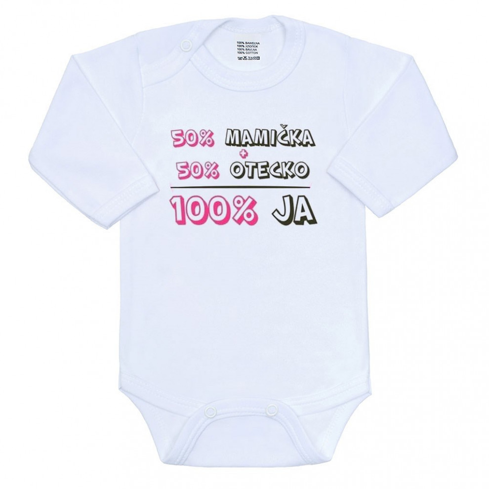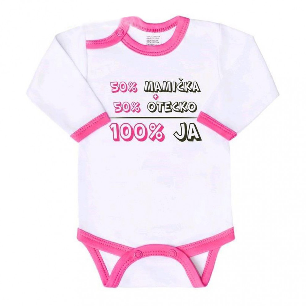Originálne bavlnené dojčenské body s dlhým rukávom New Baby, s vtipným nápisom Keď nespím ja, tak ani vy! A obrázkom roztomilého dievčatka. Body má okolo krčku, nožičiek a ručičiek farebné lemovanie. Farby použité k potlači sú certifikované a vhodné pre bábätká. Je vyrobené z príjemného a kvalitného materiálu, v ktorom sa bude Vaše bábätko cítiť príjemne. Body má zapínanie na cvočky na ramienku a medzi nožičkami, čo uľahčuje obliekanie a prebaľovanie. Doprajte Vášmu bábätku vyniknúť v originálnom body. Zloženie: 100% bavlna. Rozmery: obvod okolo hrudníka cca 50 cm, dĺžka rukáva cca 26 cm, celková dĺžka cca 42 cm.