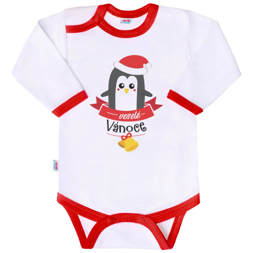 Originálne bavlnené dojčenské body s dlhým rukávom New Baby, s vtipným nápisom Moje prvé Vianoce a obrázkom roztomilého snehuliaka. Body má okolo krčku, nožičiek a ručičiek farebné lemovanie. Farby použité k potlači sú certifikované a vhodné pre bábätká. Je vyrobené z príjemného a kvalitného materiálu, v ktorom sa bude Vaše bábätko cítiť príjemne. Body má zapínanie na cvočky na ramienku a medzi nožičkami, čo uľahčuje obliekanie a prebaľovanie. Doprajte Vášmu bábätku vyniknúť v originálnom body. Zloženie: 100% bavlna. Rozmery: obvod okolo hrudníka cca 36 cm, dĺžka rukáva cca 18 cm, celková dĺžka cca 32 cm.