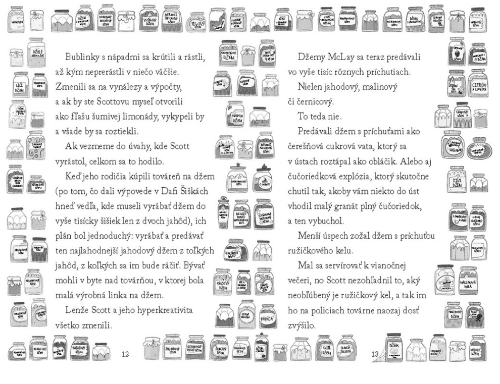 Čudo v továrni na džemDivoké dobrodružstvo nabité šikovnými vynálezmi, zábavou a plnené veľkou dávkou džemuScott McLay je geniálny vynálezca s nevyčerpateľnou zásobou supertajných receptúr a nápadov pre rodinnú továreň na džem. Ale chýba mu niečo dôležité – verný kamarát, s ktorým by mohol zdieľať svoje objavy. Až kým cez okno nepriletí malá mimozemšťanka Fizzy! Spoločne musia čeliť zákernej susedke Dafné, ktorá chce továrňu zničiť. Tento príbeh plný smiechu, priateľstva a napätia ukazuje, že keď sa spojíme, dokážeme všetko.