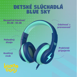 Detské slúchadlá Blue SkyLimitovaný zvuk pre neobmedzenú zábavuObjavte svet hudby a zábavy so štýlovými Kiddoboo detskými slúchadlami Blue Sky – navrhnutými pre deti od 6 rokov. S príjemným modrým dizajnom a ergonomickým prevedením ponúkajú pohodlie a bezpečnosť pri počúvaní obľúbených melódií, rozprávok či online výučbe.Každý detail navrhnutý pre pohodlie, bezpečnosť a skvelý zvukový zážitok:Bezpečná hlasitosť – možnosť obmedzenia hlasitosti na 85 dB - 95 dB chráni detský sluchPohodlný dizajn – náušníky a ľahká konštrukcia zabezpečujú komfort aj pri dlhšom noseníKvalitný zvuk – frekvenčný rozsah 20Hz–20kHz a citlivosť 105±3dB pre čistý zvukový zážitokPraktické pripojenie – 3,5 mm jack konektor kompatibilný s väčšinou zariadeníOdolnosť a prenosnosť – skladací dizajn pre jednoduché prenášanie a odolnosť voči detskému používaniuS Kiddoboo detské slúchadlá Blue Sky získajú deti nielen štýlový doplnok, ale aj bezpečný a kvalitný nástroj na počúvanie hudby či učenie sa. Ideálny darček pre malých milovníkov hudby!