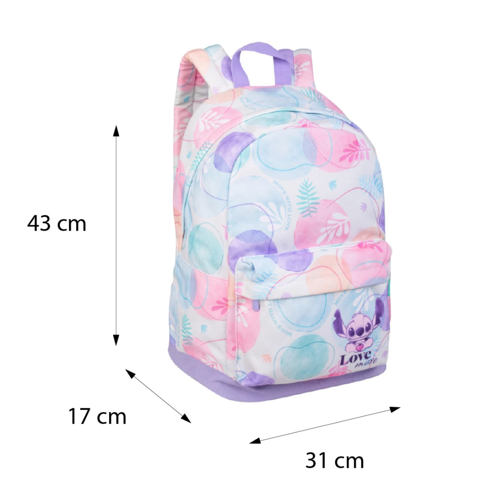 Detský batoh Cross 43 cm Stitch PastelŠtýlový a pohodlný batoh pre fanúšikov Lilo & StitchDetský batoh Cross 43 cm Stitch Pastel od značky CoolPack je ideálnym spojením štýlového dizajnu a funkčnosti pre každé dieťa. Vďaka pastelovým farbám a rozkošnému motívu Stitch z Disney sveta si ho zamilujú všetky fanúšičky tejto ikonickej postavičky. Priestranný a ergonomický batohBatoh je vybavený priestrannou hlavnou komorou vhodnou na knihy, zošity či oblečenie, ergonomicky tvarovanými a polstrovanými ramennými popruhmi, vystuženým chrbtovým panelom aj dnom pre pohodlné nosenie počas celého dňa. Nechýba ani bezpečné vnútorné vrecko na notebook alebo tablet, predné vrecko na drobnosti so zipsom a odolný vodeodolný materiál 600D Polyester, ktorý ochráni obsah batohu pred dažďom a znečistením.