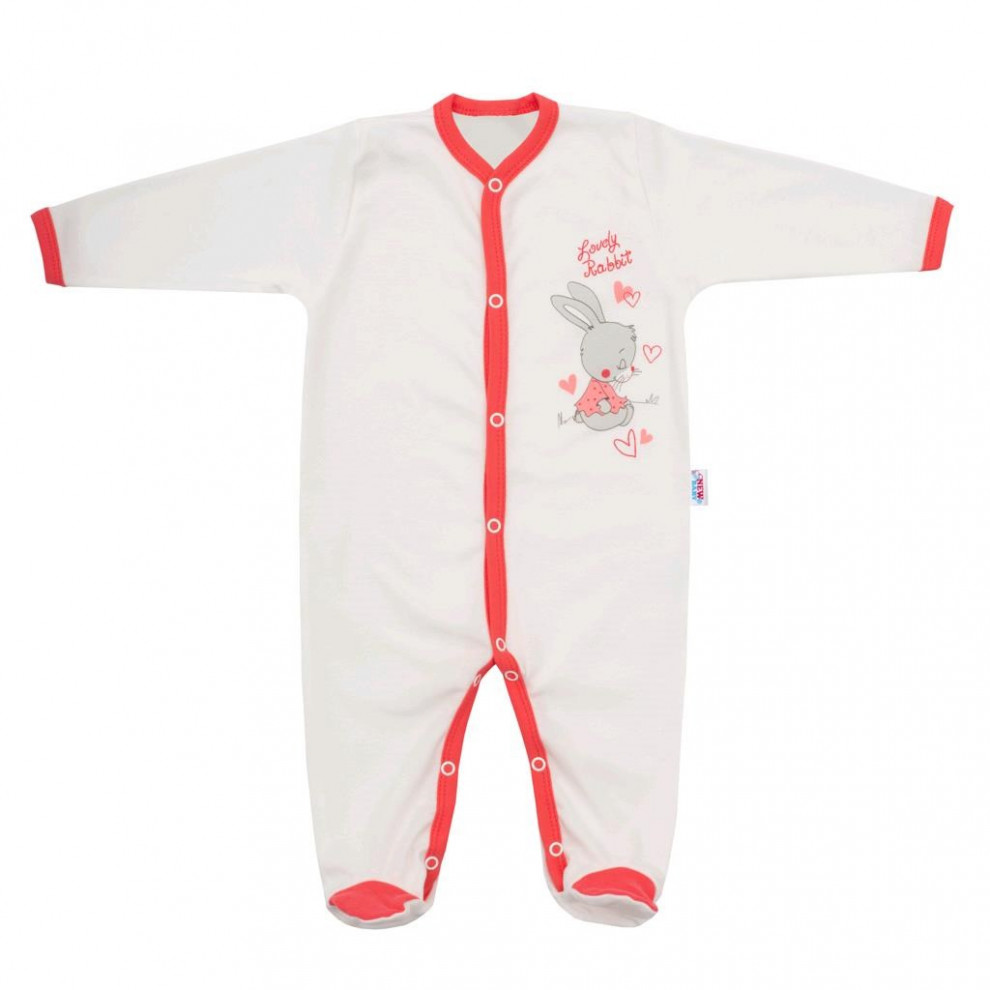 Bavlnený dojčenský overal New Baby Lovely Rabbit pre bábätká. Detský overalik je v krásnej pastelovej farbe s farebným lemovaním a je zdobený obrázkom králička a s nápisom Lovely Rabbit. Praktické zapínanie na cvočky po celej dĺžke a medzi nožičkami. Zloženie: 100% bavlna.