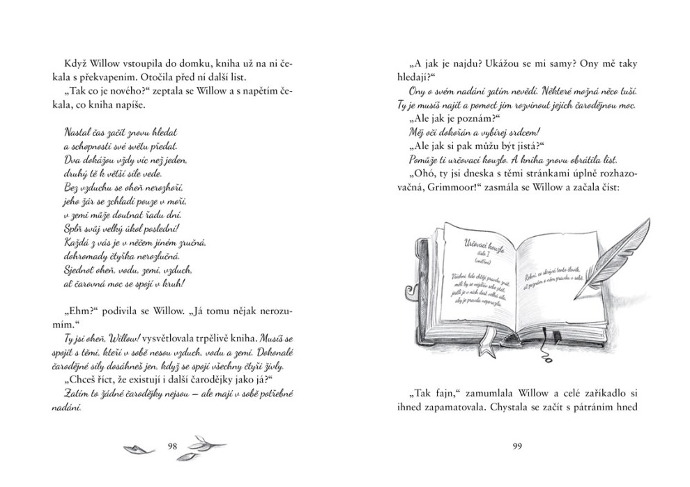 Dievča menom WillowMalá Willow sa jedného dňa dozvie, že jej teta zanechala zvláštne dedičstvo, svoju čarodejnú mocJedenásťročná Willow žije so svojím otcom. Po rokoch cestovania po celom svete sa vracajú na miesto, kde prežila prvé štyri roky života. Tam sa dozvie, že teta Alwina jej zanechala zvláštne dedičstvo – malý les so záhadným domčekom plným neobyčajných vecí. Zakrátko zistí, že Alwina nebola obyčajná teta. Bola to mocná čarodejnica, ktorá jej okrem tajuplného lesa odkázala niečo oveľa výnimočnejšie – svoju čarodejnú moc.Vydajte sa na dobrodružnú cestu plnú objavovania, hľadania spriaznených duší a záchrany lesa a jeho obyvateľovPo počiatočnom zdráhaní sa Willow rozhodne, že toto neobyčajné dedičstvo prijme, a jej život sa od základov zmení. Pomocou vševediacej čarodejníckej knihy a verného zvieracieho sprievodcu lišiaka Rufusa krok za krokom preniká do tajov mágie a sveta kúziel.Čaká ju však náročná úloha. Musí nájsť ďalšie tri dievčatá, ktoré majú podobný dar čarodejníctva a musí s nimi spojiť svoje magické schopnosti. Ak sa jej to nepodarí, jej čarovný les zmizne.Fantastický príbeh popretkávaný mágiou a kúzlami, ktorý učí, aké dôležité je ochraňovať prírodu a starať sa o ňu.