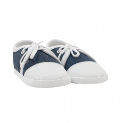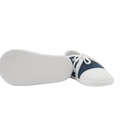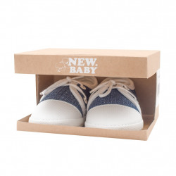 Dojčenské capačky New Baby pre bábätká. Krásne topánočky sú v štýle tenisiek s moderným vzhľadom na zaviazovanie na šnúrku. Topánočky priliehajú k nožičke a majú široké vnútro, čo umožňuje voľný pohyb prstov a svalov. Výrobok nie je určený na chôdzu. Sú veľmi ľahké s tenkou syntetickou podrážkou. Zloženie: 80% bavlna, 20% polyester. Podrážka: syntetický materiál. Dĺžka vnútornej stielky 11 cm. Určené pre deti 3-6 mesiacov. Vhodné pre chlapčekov i dievčatká. Dodávané v praktickej EKO krabičke. Upozornenie: pod textilnou vložkou sa nachádza papierová vložka, ktorá drží tvar capačky. Pred prvým použitím odstráňte túto papierovú vložku.