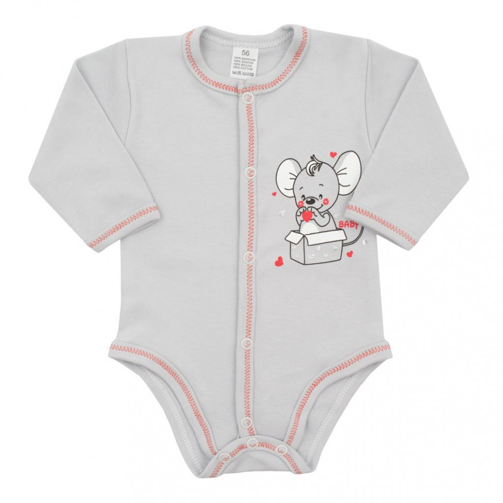 Dojčenské celorozopínacie body New Baby Mouse sivé