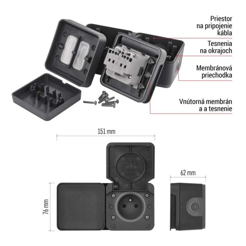 | prevedenie | 2 nás. vodeodolné - 1 × zásuvka + 1 × prepínač striedavý |