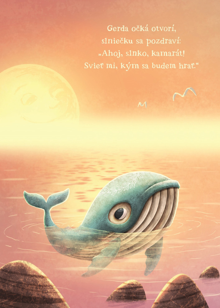 Gerda. Malá veľrybkaNové príbehy obľúbenej veľryby Gerdy.Oceán, kde Gerda býva, veľa dobrodružstiev skrýva. Nikto sa tam nenudí, keď sa slnko prebudí. Až keď slnko ide spať, prestane sa Gerda hrať. Mesiac jej na cestu svieti: „Dobrú nôcku, milé deti.“Pútavé príbehy o veľrybe s krásnymi ilustráciami.Gerda. Malá veľrybka je pokračovanie populárnej série kníh z ktorých už vyšlo: Gerda - Príbeh veľryby a Gerda - Strach má veľké oči.?Pozrite si recenziu na našom Instagrame - Gerda. Malá veľrybka?