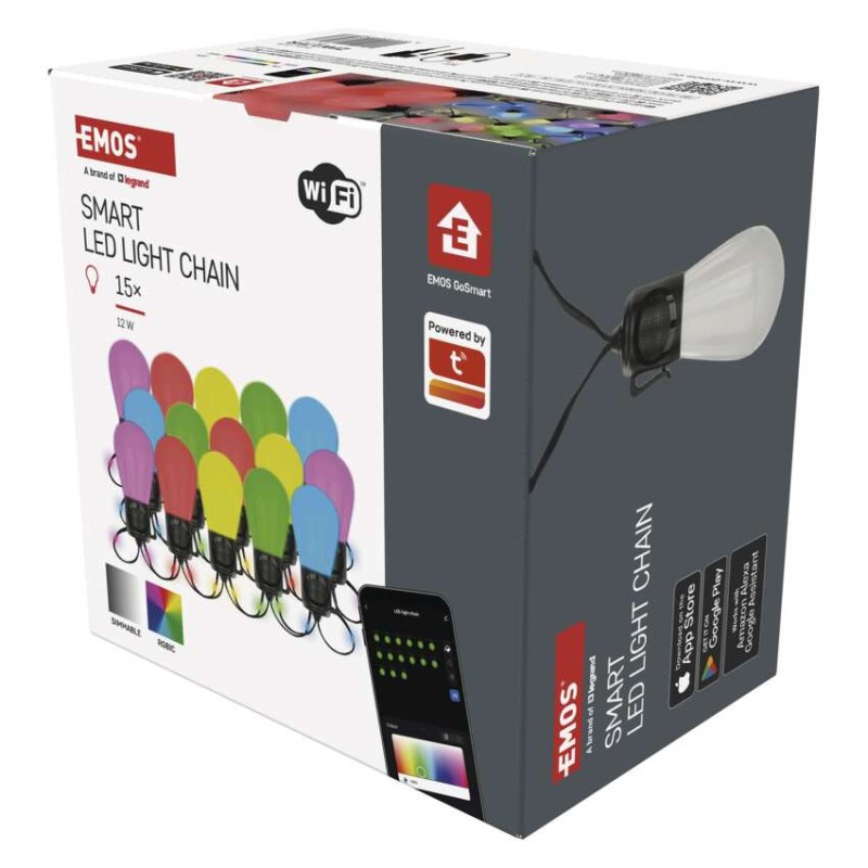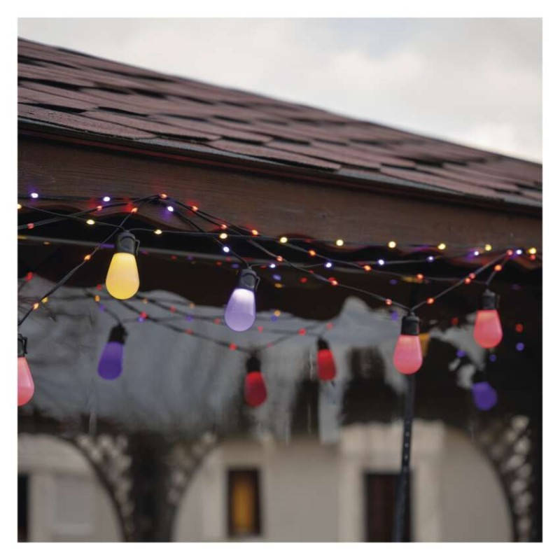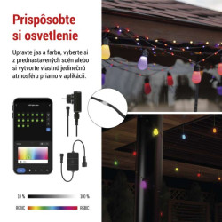 GoSmart LED svetelný reťazec – 15× párty žiarovky, 15 m, vonkajšie aj vnútorné, RGBIC WiFi