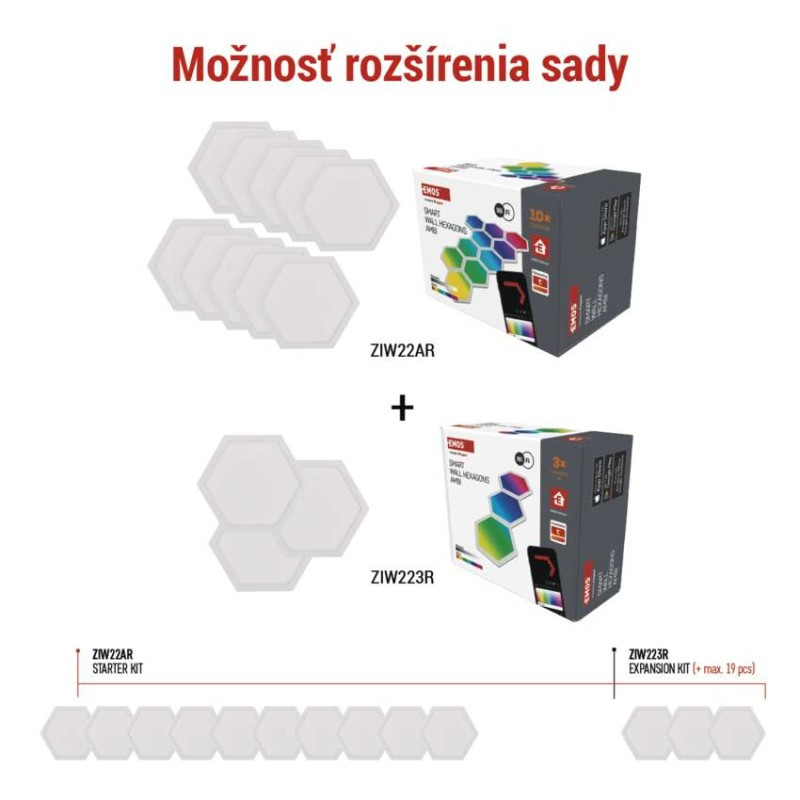 GoSmart LED svietidlo Hexagon, štartovací sada, 10 dielov, 19 W, RGBIC stmievateľné, WiFi