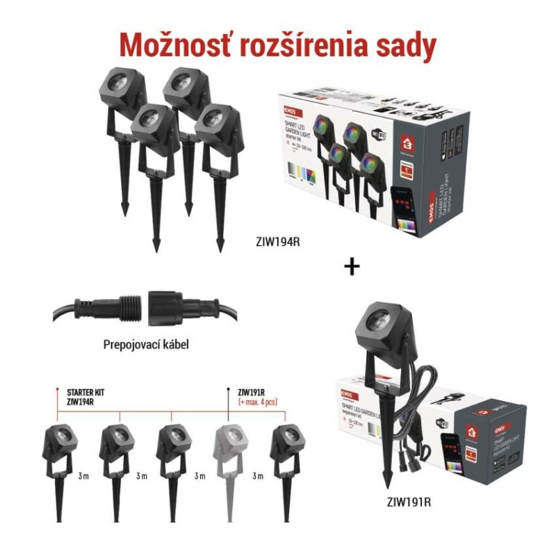 GoSmart vonkajšie LED bodové svetlo, rozširujúca sada, 1 kus, 1,5 W, RGBIC stmievat., WiFi