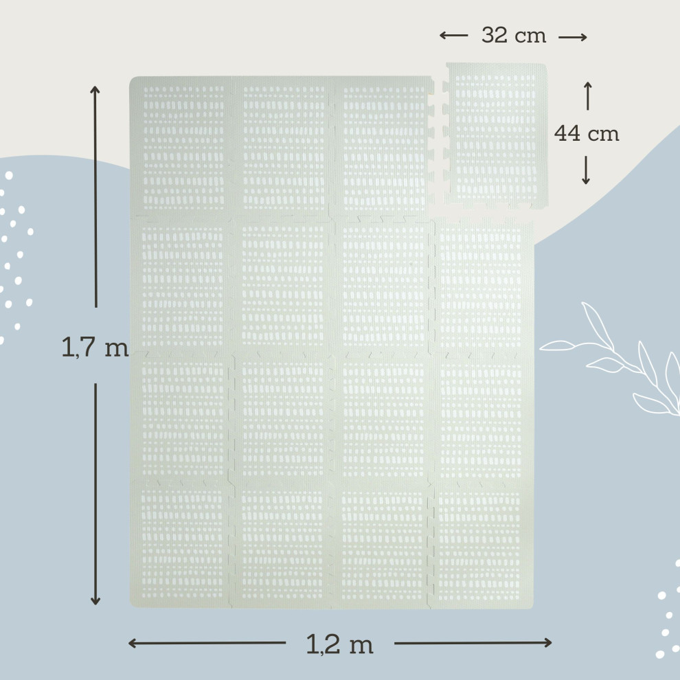 Hracia podložka Puzzle XL Hygge Grey 1.7 x 1.2 mHravá a pohodlná puzzle podložka Extra veľká hracia podložka Puzzle XL v sivej farbe sa skladá zo 16 penových štvorcov, ktoré sú 4x väčšie ako klasické puzzle diely, preto poskytuje štvornásobok priestoru na plazenie, hranie a detské dobrodružstvá. S elegantnou sivou farbou a ručne kreslenými motívmi konfiet podložka nielenže ozdobí detskú izbu, ale poskytne aj pohodlný "vankúš" na tvrdých podlahách. Vďaka bezpečnému spojeniu sú dosky blízko seba, takže deti sa môžu bezstarostne hrať a objavovať svet okolo seba.Bezpečná hracia podložka pre najmenšíchHracia podložka v béžovej farbe je vyrobená z kvalitnej EVA peny, ktorá je hrubá 1,2 cm a o 20% mäkšia a teplejšia ako iné alternatívy, čo zabezpečuje pohodlné a bezpečné hranie. Podložka je vodeodolná a jednoducho ju vyčistíte mydlom a handričkou, takže ju môžete používať nielen doma, ale aj vonku. Navyše, je 100% bez zápachu a neobsahuje nebezpečné látky ako formamid, BPA a ftaláty.