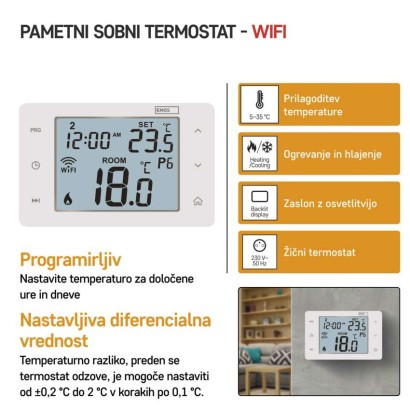 • Izbový programovateľný drôtový WiFi GoSmart termostat P56201