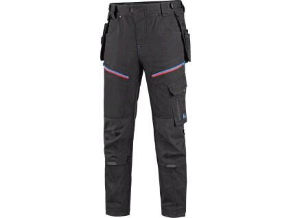 Pánské pracovní kalhoty moderního střihu slim-fit. Kombinace kvalitního směsového materiálu s elastanem a 4-way stretch materiálu v exponovaných místech umožňuje volný a pohodlný pohyb. Vybavení kalhot: flexibilní pas s možností upravení velikosti a poutky na opasek, na vnitřní straně pasu protiskluzový potisk, 2 přední kapsy, 2 odnímatelné kapsy na nářadí vyztuženy materiálem CORDURA®, stehenní zipové kapsy s možností ventilace, boční kapsa se zipovou kapsou, 2 zadní kapsy (jedna zipová) vyztuženy materiálem CORDURA®, kapsa na skládací metr s dalšími přihrádkami, ergonomicky tvarovaná kolena zesílena materiálem CORDURA® s možností vložení kolenních výztuh bočním vkládáním a ventilací, kapsa na ID kartu, spodní část nohavic vyztužena materiálem CORDURA®, reflexní doplňky. Kalhoty jsou vybaveny EASY-PROLONG systémem, který umožňuje snadné prodloužení střihu na vyšší postavu uvolněním švu na nohavicích. Doporučené použití: strojírenství, stavebnictví, lehký průmysl, automobilový průmysl, logistika, skladování, spedice, autoservisy, údržba, montáže, zemědělství, zahrada, hobby a volný čas.