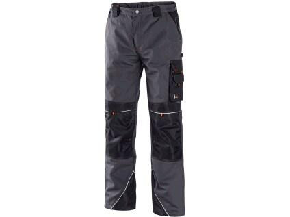 Pánské montérkové kalhoty, pas s poutky na opasek a gumou v bocích, přední klínové kapsy, multifunkční kapsy na obou stranách, kolena zesílena materiálem 600D polyesterem s možností vložení kolenních výztuh, dvě zadní kapsy s klopami, spodní část nohavic vyztužena materiálem 600D polyester, reflexní doplňky. Doporučené použití: stavebnictví, strojírenství, lehký průmysl, automobilový průmysl, logistika, skladová manipulace, spedice, autoservisy, údržba, montáže, zemědělství, zahrada, hobby.