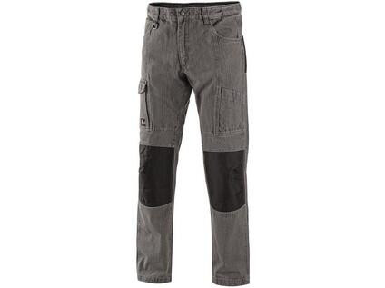 Pánské džíny, flexibilní pas s poutky na opasek a plastovým přívěskem, vnitřní protiskluzová gumová páska v pase, 2 přední kapsy, 2 zadní kapsy z materiálu CORDURA, boční multifunkční kapsy, na pravé kapse poutko pro kladivo, kolena zesílena materiálem CORDURA.