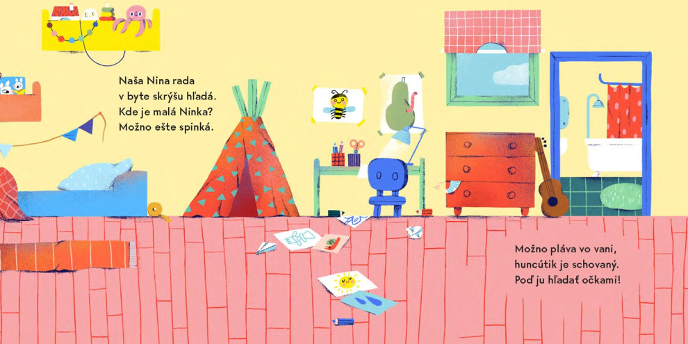 Kde je Nina?Objavujte s deťmi – kde sa ukryla malá Nina?Malá Ninka sa niekde stratila – je v izbičke, na nočníku alebo na balkóne? Poď ju hľadať spolu s dieťaťom! Táto milá knižka je určená najmenším deťom, ktoré sa učia rozprávať. Text vytvorila logopedička s dôrazom na jednoduché slová a zrozumiteľné vety. Ilustrácie Márie Nerádovej dopĺňajú príbeh a podporujú pozornosť aj komunikáciu. Hravé čítanie, ktoré rozvíja reč a fantáziu!