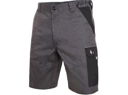 Pánské montérkové kraťasy z lehkého materiálu, pas s poutky na opasek a gumou v bocích, přední klínové kapsy, boční kapsa s klopou, kapsa na skládací/svinovací metr, zadní jednoduchá kapsa na pravé straně, reflexní doplňky. Doporučené použití: letní pracovní oděv, stavebnictví, strojírenství, lehký průmysl, automobilový průmysl, logistika, skladová manipulace, spedice, autoservisy, údržba, montáže, zemědělství, učiliště, zahrada, hobby.