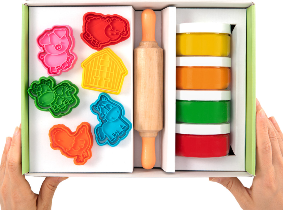 Kreatívna modelovacia sada FarmaKreatívna sada pre malé ručičkyPredstavujeme vám hravý a bezpečný spôsob, ako rozvíjať kreativitu vašich detí – Kreatívna modelovacia sada Farma ChildGen. Tento prémiový set je vyrobený zo 100 % prírodných a netoxických surovín, čo zaručuje bezpečnú a zábavnú hru pre malých tvorcov.Vytvorte si vlastnú farmu plnú fantázieSada obsahuje:4 farebné kelímky plastelíny (žltá, oranžová, červená, zelená)12 tematických vykrajovačiek a pečiatok s motívmi farmy1 drevený valček na modelovanieDeti môžu vytvárať rôzne farmárske scény, učiť sa rozpoznávať zvieratká ako kravička, koník, sliepočka či prasiatko, a zároveň si rozvíjať jemnú motoriku a predstavivosť.Prečo si vybrať práve tento set?100 % prírodné zloženieBez chemikálií a konzervantov: bezpečné aj pre najmenšíchHodvábna textúra: ľahko tvarovateľná a príjemná na dotykIdeálny darček pre malých tvorcovTento set je skvelým darčekom pre deti od 3 rokov. Či už na narodeniny, Vianoce alebo len tak pre radosť, poteší každého malého umelca. Navyše, vďaka prírodnému zloženiu je bezpečný aj pri dlhšom hraní.