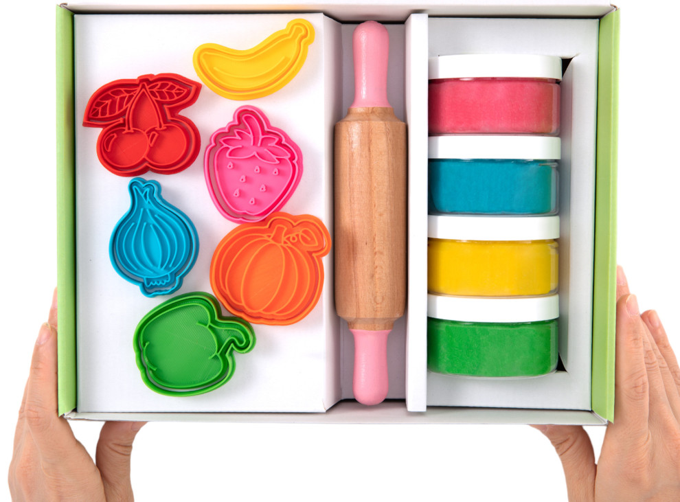 Kreatívna modelovacia sada OvocieKreatívna sada pre malé ručičkyPredstavujeme vám hravý a bezpečný spôsob, ako rozvíjať kreativitu vašich detí – Kreatívna modelovacia sada Ovocie ChildGen. Tento prémiový set je vyrobený zo 100 % prírodných a netoxických surovín, čo zaručuje bezpečnú a zábavnú hru pre malých tvorcov.Vytvorte si vlastnú záhradu plnú fantázieSada obsahuje:4 farebné kelímky plastelíny (žltá, ružová, zelená, modrá)12 tematických vykrajovačiek a pečiatok s motívmi ovocia a zeleniny1 drevený valček na modelovanieDeti môžu vytvárať rôzne ovocie a zeleninu, učiť sa rozoznávať ich, a zároveň si rozvíjať jemnú motoriku a predstavivosť.Prečo si vybrať práve tento set?100 % prírodné zloženieBez chemikálií a konzervantov: bezpečné aj pre najmenšíchHodvábna textúra: ľahko tvarovateľná a príjemná na dotykIdeálny darček pre malých tvorcovTento set je skvelým darčekom pre deti od 3 rokov. Či už na narodeniny, Vianoce alebo len tak pre radosť, poteší každého malého umelca. Navyše, vďaka prírodnému zloženiu je bezpečný aj pri dlhšom hraní.