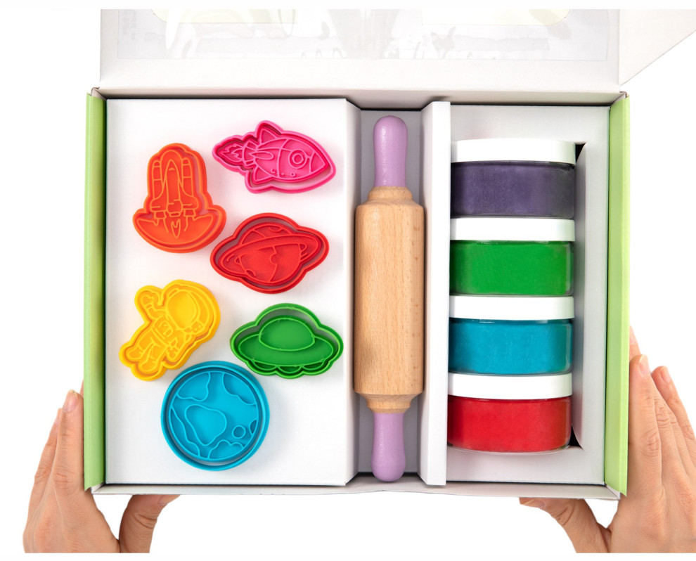 Kreatívna modelovacia sada VesmírKreatívna sada pre malé ručičkyPredstavujeme vám hravý a bezpečný spôsob, ako rozvíjať kreativitu vašich detí – Kreatívna modelovacia sada Vesmír ChildGen. Tento prémiový set je vyrobený zo 100 % prírodných a netoxických surovín, čo zaručuje bezpečnú a zábavnú hru pre malých tvorcov.Vytvorte si vlastný vesmír plný fantázieSada obsahuje:4 farebné kelímky plastelíny (fialová, červená, zelená, modrá)12 tematických vykrajovačiek a pečiatok s vesmírnymi motívmi 1 drevený valček na modelovanieDeti môžu vytvárať rôzne vesmírne útvary, učiť sa rozoznávať ich, a zároveň si rozvíjať jemnú motoriku a predstavivosť.Prečo si vybrať práve tento set?100 % prírodné zloženieBez chemikálií a konzervantov: bezpečné aj pre najmenšíchHodvábna textúra: ľahko tvarovateľná a príjemná na dotykIdeálny darček pre malých tvorcovTento set je skvelým darčekom pre deti od 3 rokov. Či už na narodeniny, Vianoce alebo len tak pre radosť, poteší každého malého umelca. Navyše, vďaka prírodnému zloženiu je bezpečný aj pri dlhšom hraní.