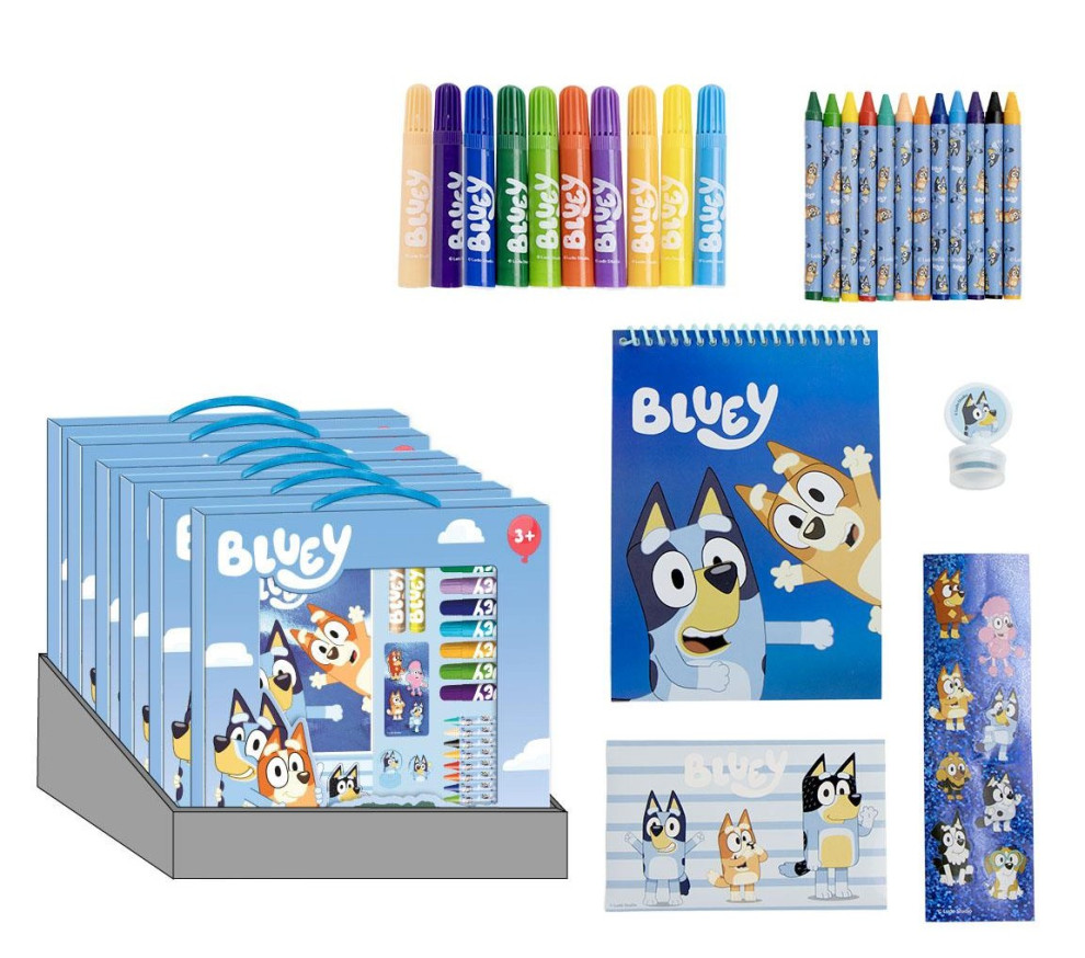 Kreatívna sada BlueyPodporte tvorivosť vášho dieťaťaVitajte vo svete farieb a nekonečnej zábavy! S kreatívnou sadou Bluey, ktorá je ako stvorená pre malých umelcov, sa fantázii medze nekladú. Deti si môžu nielen kresliť a písať, ale aj vlastnoručne vyfarbiť skice s motívom ich obľúbenej postavičky Bluey!Tento originálny set je ideálny na doma, do školy alebo ako kreatívny darček, ktorý rozžiari každú detskú tvár.Darujte svet plný fariebMotív Bluey – obľúbená rozprávková postavička detíVoskovky a fixky na kreslenie a písanieVyfarbiteľný zošit so skicami s Bluey motívomĎalšie kreatívne doplnkyPodporuje kreativitu a jemnú motorikuZabaví aj počas daždivých dní či dlhých ciest