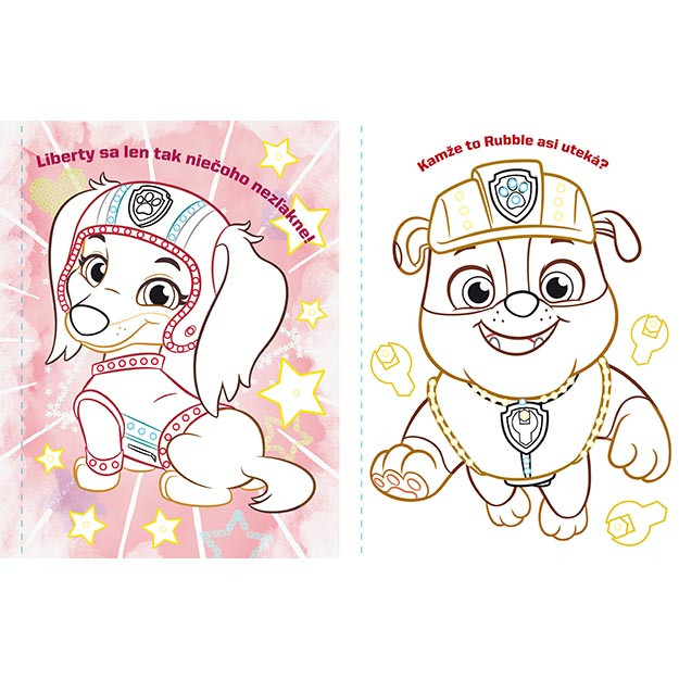 Labková patrola - Vymaľovanky s kamienkamiLesklé tvorenie s Labkovou patrolouS týmto omaľovánkovým zošitom môžeš okrem vyfarbovania skrášľovať psíkov z Labkovej patroly s farebnými kamienkami a dodať im tak trochu lesu.Rozvíja detskú fantáziu a kreativituOmaľovánky obsahujú 12 strán s omaľovánkami a jeden list trblietavých kamienkov na ozdobenie obrázkov.