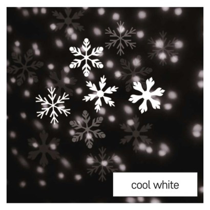 LED dekoratívny projektor – vločky, vonkajší aj vnútorný, studená biela