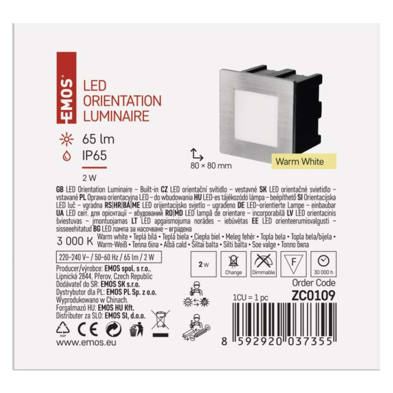 LED orientačné vstavané svietidlo AMAL 80×80, 2W teplá b.,IP65