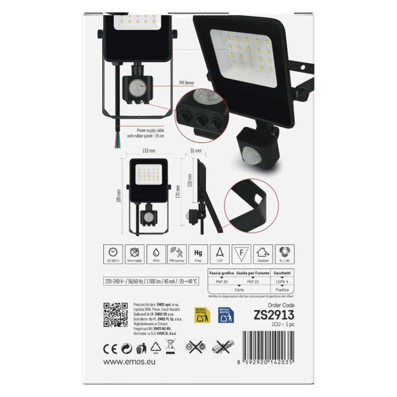 LED reflektor VISIO s pohybovým čidlom, 10W, neutrálna biela, čierný