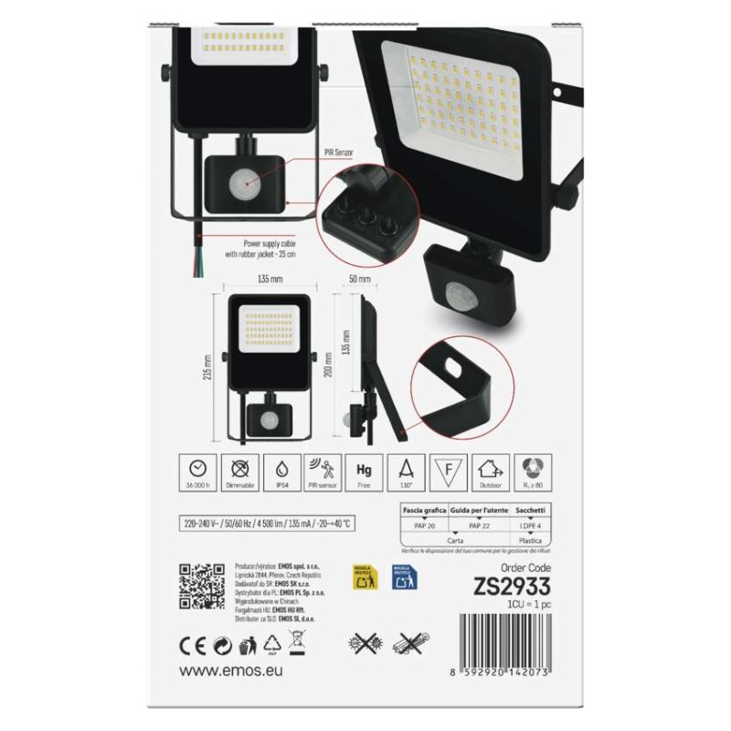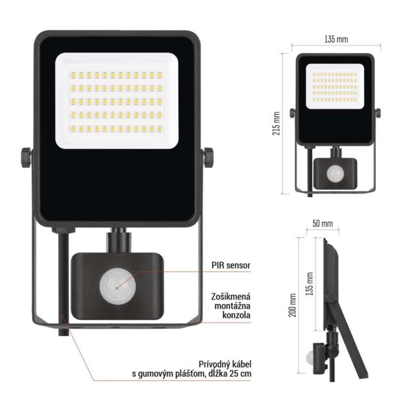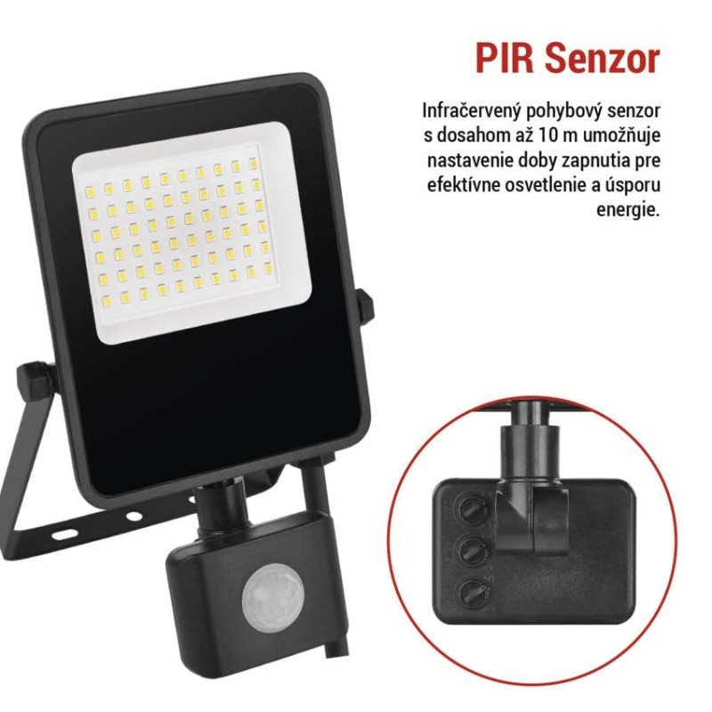 LED reflektor VISIO s pohybovým čidlom, 30 W, neutrálna biela, čierný