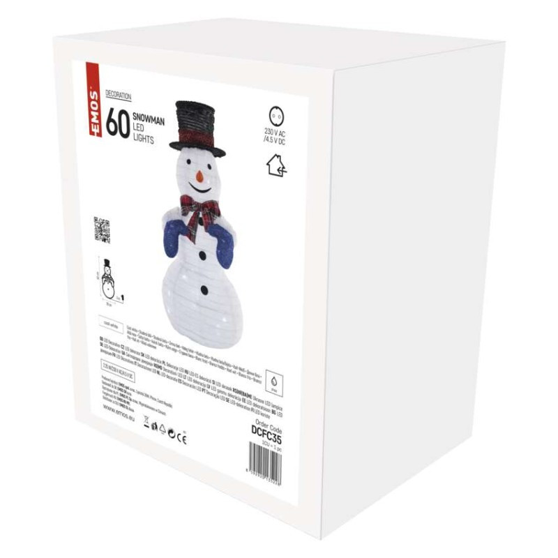 LED skladací snehuliak, 60 cm, vonk./vnút., studená biela