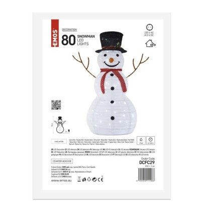 LED skladací snehuliak, 90 cm, vonkajší aj vnútorný, studená biela
