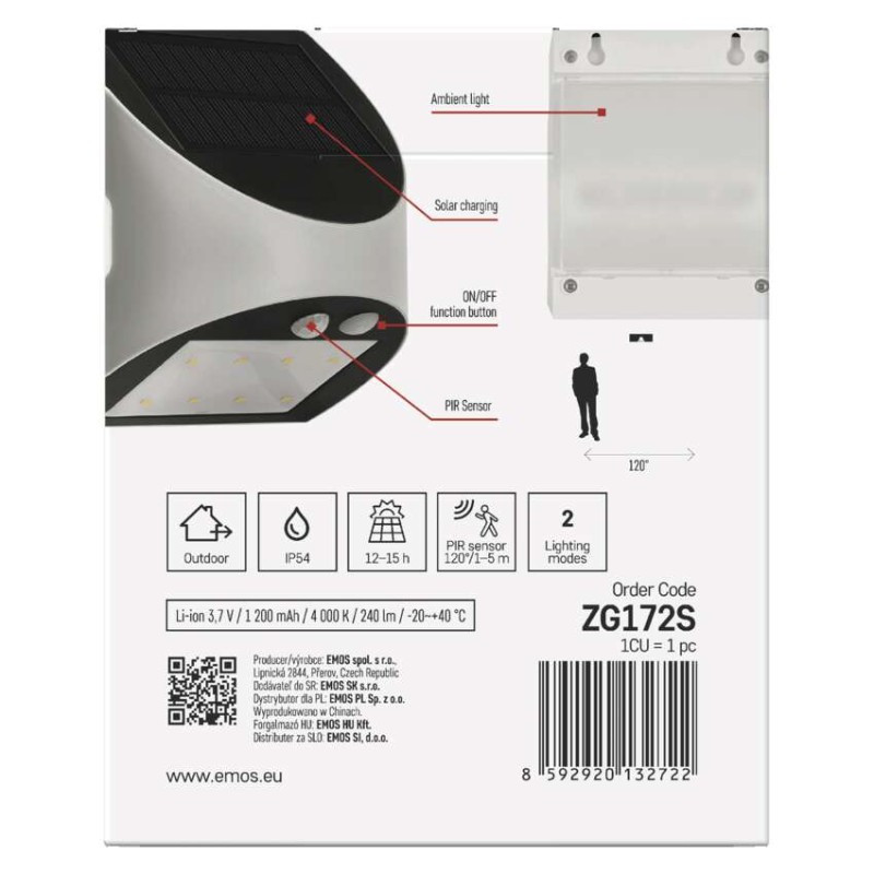 LED solárne svietidlo LUMI so senzorom pohybu, neutrálna biela