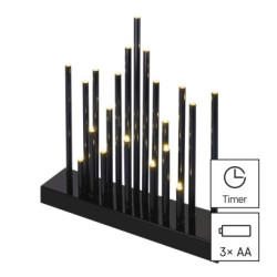 LED svietnik čierny, 27,5 cm, 3x AA, vnútorný, teplá biela, časovač