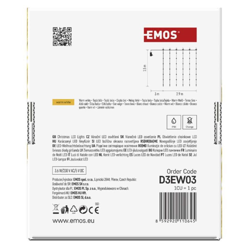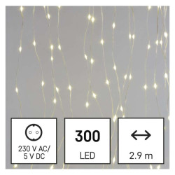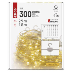 LED vianočná drop reťaz – záclona, 2,9x1,5 m, vonkajšia aj vnútorná, teplá biela, programy