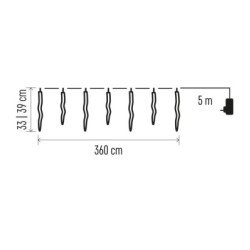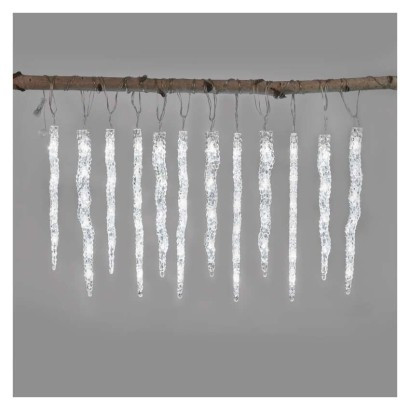 LED vianočná girlanda – cencúle, 12 ks, 3,6 m, vonk. a vnút., studená biela