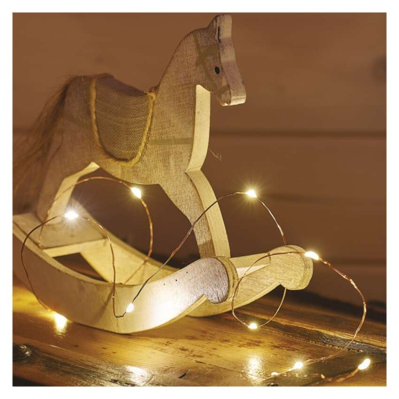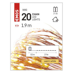 LED vianočná nano reťaz, 1,9 m, 2x AA, vnútorná, teplá biela, časovač
