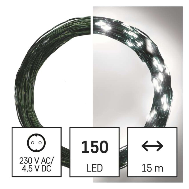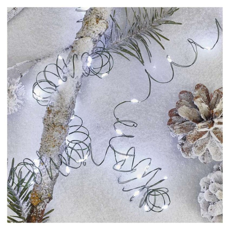 LED vianočná nano reťaz zelená, 15 m, vonkajšia aj vnútorná, studená biela, časovač