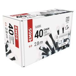 LED vianočná reťaz, 2,8 m, 3x AA, vonkajšia aj vnútorná, studená biela, časovač