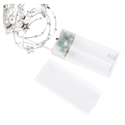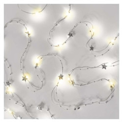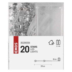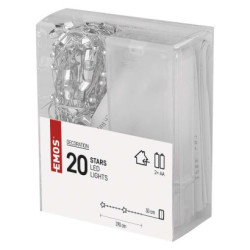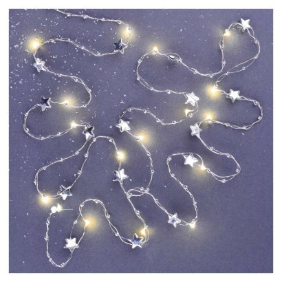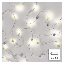 • LED vianočná reťaz strieborný – hviezdičky, 1,9 m, 2x AA, vnútorný, teplá biela, časovač