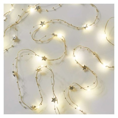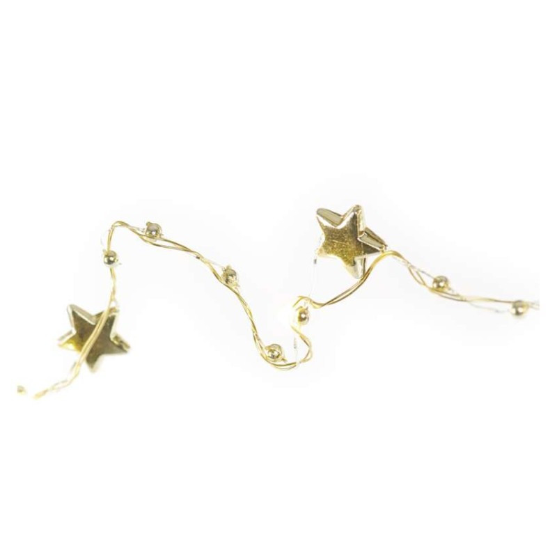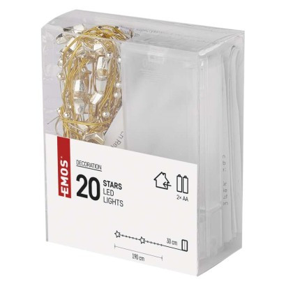 LED vianočná reťaz zlatá – hviezdičky, 1,9 m, 2x AA, vnútorný, teplá biela, časovač