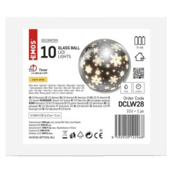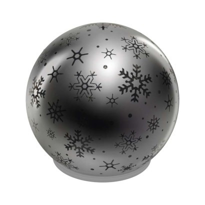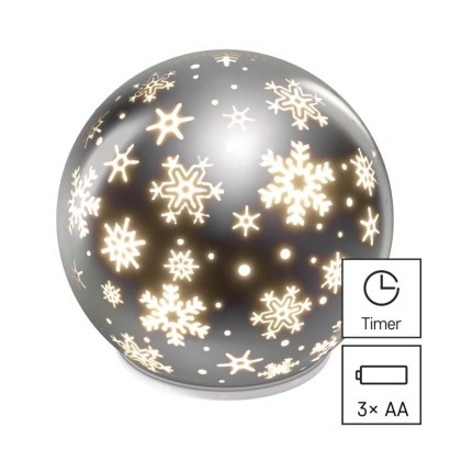 LED vianočná sklenená guľa – vločky, 12 cm, 3x AA, vnútorný, teplá biela, časovač