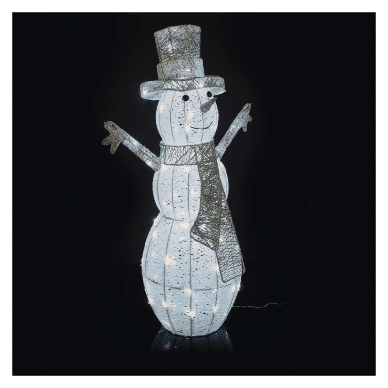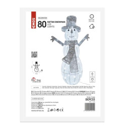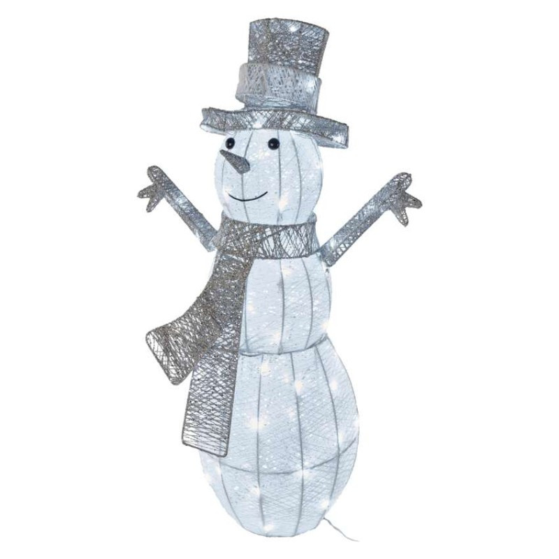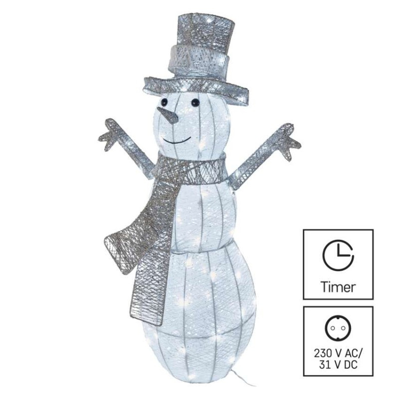 LED vianočný snehuliak ratanový, 82 cm, vonk./vnút., studená biela, časovač