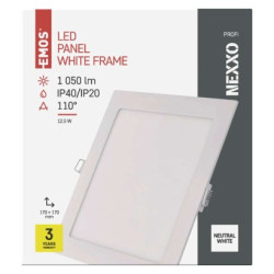 LED vstavané svietidlo NEXXO, štvorec, biely, 12W, neutrálna biela