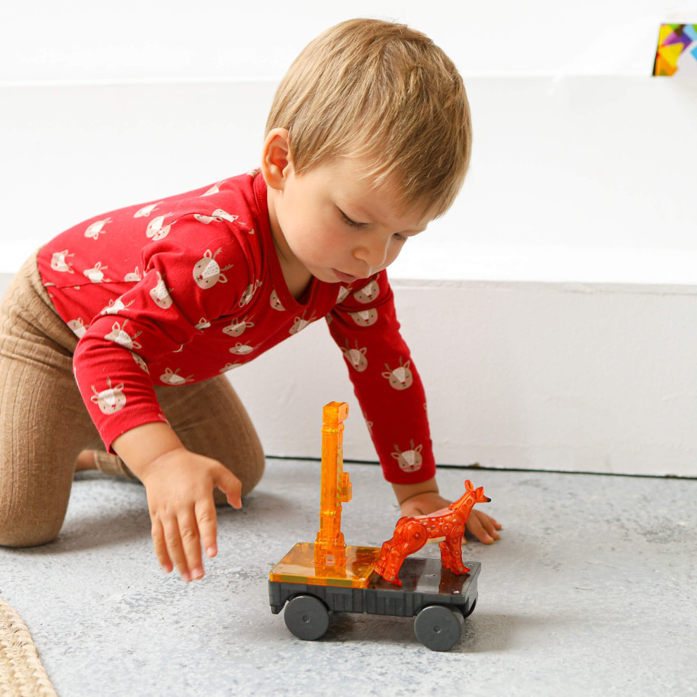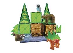 Magnetická stavebnica Forest 25 dielovZažite napínavé lesné dobrodružstváPreskúmajte záhadnú lesnú divočinu s lesnými zvieratkami, ktoré sa spolu zabávajú medzi vysokými stromami. Spriatelíte sa s medvedíkom čistotným, sovou, medveďom aj jeleňom. Táto sada obsahuje vôbec prvé magnetické listy a stromy a všetky dieliky majú nádherné realistické detaily. Jedinečné figúrky zvieratiek podporujú nápaditú hru a rozvíjajú detskú kreativitu. Stavebnica je plne kompatibilná so všetkými Magna-Tiles® sadami, čo zabezpečuje ešte viac tvorivej zábavy.Zmysluplná stavebnica pre malých staviteľovMagna-Tiles je zástancom zmysluplnej hry, to znamená zábavnej a pútavej, no zároveň založenej na rozvíjaní detských zručností. Táto stavebnica podporuje rozvoj koordinácie ruka-oko, jemnej motoriky a logického myslenia prostredníctvom skúmania príčiny a následku. Bezpečnosť a špičková kvalita sú zaistené použitím potravinárskeho, netoxického plastu MABS bez BPA, ftalátov a latexu. Pevná konštrukcia dielikov zabraňuje praskaniu a udržiava magnety bezpečne na svojom mieste.Sada obsahuje 25 magnetických dielikov:4x lesná figúrka - medvedík čistotný, sova, medveď, jeleň,11x štvorec,2x pravý trojuholník,2x, rovnoramenný trojuholník,6x strom/list.