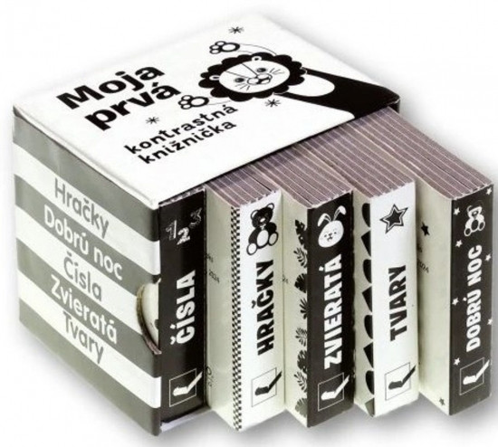 Moja prvá kontrastná knižničkaKnižky plné kontrastov: Vzdelávajte svoje dieťa už od maličkaMoja prvá kontrastná knižnička je praktický box plný piatich čiernobielych leporel určených pre bábätká. Každé leporelo predstavuje rôzne témy ako zvieratká, tvary, predmety a ďalšie, čím pomáha podporovať zrakový a kognitívny vývoj malých detí. Čiernobiele obrázky stimulujú vizuálny zmysel a prinášajú rozmanité zážitky už od útleho veku. Knižka je ideálna na rozvoj schopností bábätka a zároveň ponúka zábavné a interaktívne chvíle pri objavovaní sveta.